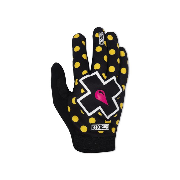 Muc-Off MTB -käsineet Yellow Polka -kuosilla tarjoavat erinomaisen yhdistelmän mukavuutta, kestävyyttä ja suorituskykyä maastopyöräilyyn. Käsineiden yläosa on valmistettu neljään suuntaan joustavasta, hengittävästä polyesteristä, mikä takaa miellyttävän istuvuuden ja liikkuvuuden. Esimuotoiltu rakenne varmistaa ergonomisen istuvuuden, ja joustava neopreeninen slip-on-mansetti helpottaa pukemista ja riisumista. Perforoitu, yhdestä kappaleesta valmistettu Clarino®-mikrokuituinen kämmenosa siirtää tehokkaasti kosteutta ja parantaa ilmanvaihtoa. Silikonipainatukset kämmenessä ja sormissa tarjoavat erinomaisen pidon ohjaustangosta ja jarrukahvoista, mikä lisää hallintaa ajon aikana. Peukalon päällekkäispaneeli lisää kestävyyttä ja vähentää hiertymien riskiä, kun taas mikrokuituinen peukalo-osa toimii kätevänä hikinauhana. Lisäksi käsineet ovat kosketusnäyttöyhteensopivat, joten voit käyttää älylaitteitasi ilman käsineiden riisumista.