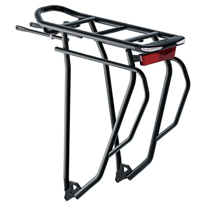 Racktime Gleamit 2.0 Tour on monipuolinen ja kestävä takatavarateline, joka on suunniteltu erityisesti 29-tuumaisille pyörille. Sen SNAPIT 2.0 -yhteensopivuus mahdollistaa helpon ja turvallisen kiinnityksen erilaisille lisävarusteille. Telineessä on integroitu Trelockin valmistama takavalo, joka parantaa näkyvyyttä ja turvallisuutta. Tour-malli tarjoaa toisen tason tavaroille, mikä lisää kuljetuskapasiteettia. Valmistettu kestävästä alumiinista, telineen putken halkaisija on 14 mm, ja se kestää enintään 25 kg:n kuorman. Paino on noin 850 g, mikä tekee siitä kevyen mutta tukevan valinnan. IMM-asennussarjat ja jousipuristimet ovat saatavilla erikseen, mikä mahdollistaa telineen mukauttamisen yksilöllisiin tarpeisiin.