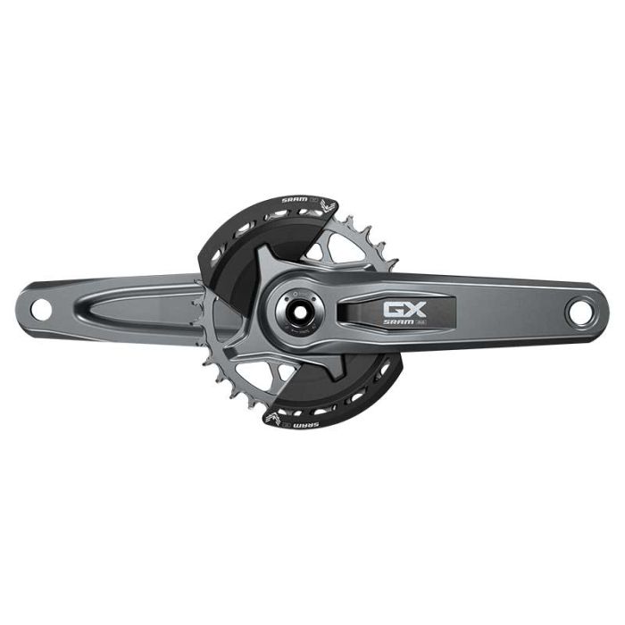 SRAM GX Eagle T-Type Wide DUB -kampisarja tarjoaa suorituskykyä ja kestävyyttä vaativille maastopyöräilijöille. Taotusta alumiinista valmistetut kammet yhdistävät keveyden ja jäykkyyden, mikä takaa tehokkaan polkemisen. Kampisarja sisältää 32-hampaisen Direct Mount -ketjupyörän ja kaksi itsenäisesti irrotettavaa komposiittista bashguard-suojalevyä, jotka suojaavat ketjupyörää kolhuilta ja naarmuilta haastavassa maastossa. 55 mm:n ketjulinja ja 174 mm:n Q-faktori varmistavat yhteensopivuuden 12-vaihteisten T-Type -voimansiirtojärjestelmien kanssa. DUB-teknologia parantaa kestävyyttä ja jäykkyyttä, mutta huomioithan, että DUB-keskiölaakeri ja välikkeet eivät sisälly pakkaukseen.
